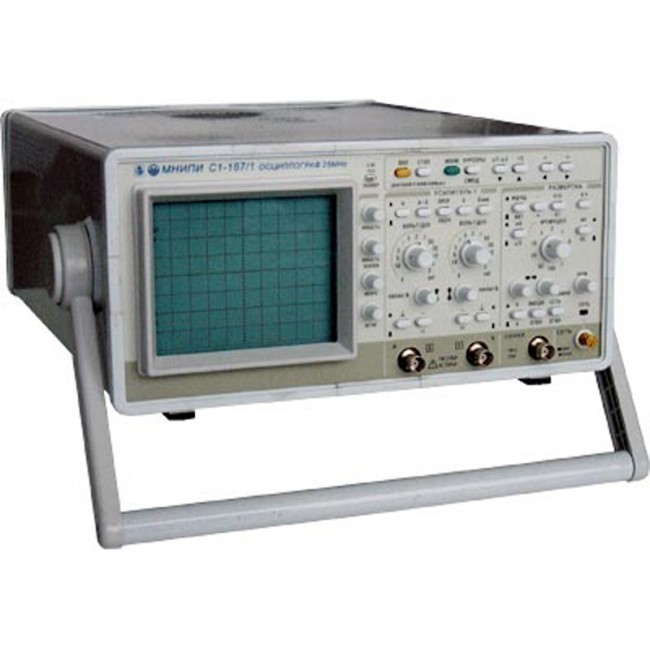 Прибор С1-167/2 - аналоговый осциллограф, предназначен для исследования периодических электрических сигналов путем визуального наблюдения и измерения их амплитудных и временных параметров по шкале экрана ЭЛТ в полосе частот 0 - 25 МГц со встроенным мультиметром, измеряющим напряжение и силу постоянного тока, среднее квадратическое значение напряжения и силы переменного тока, электрическое сопротивление постоянному току.